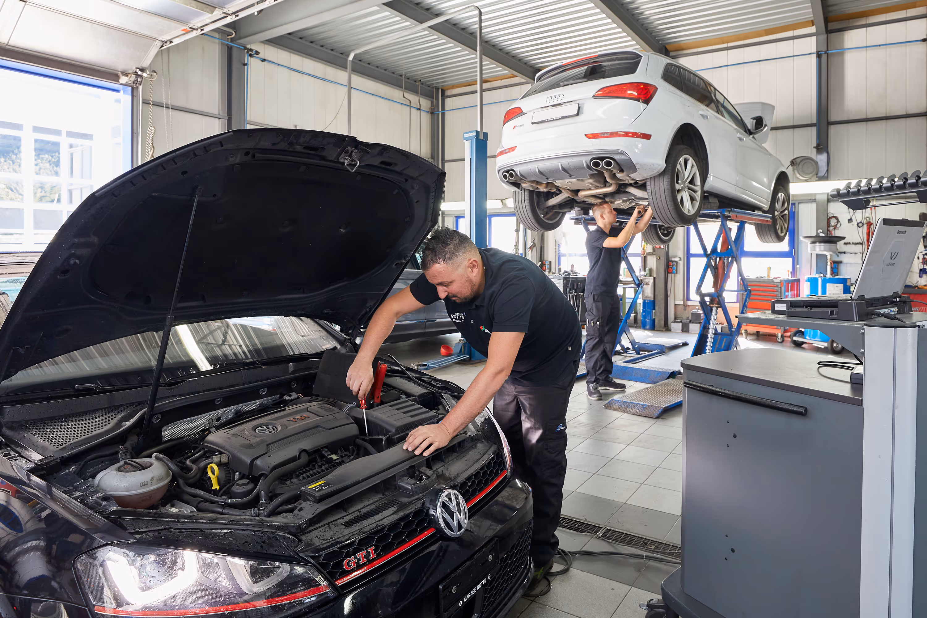 Als "stop+go"-Fachbetrieb decken wir Wartungs- und Reparaturarbeiten für die AMAG-Marken VW, Audi, Seat & Škoda sowie auch für alle anderen Marken ab: von der Inspektion über Service, Zahnriemenwechsel bis hin zur komplexen Motorinstandsetzung. Und auch die Vorbereitung zur Motorfahrzeug-Kontrolle (MFK) gehört dazu. Dank regelmässiger Schulungen und modernster Diagnosegeräte gewährleisten wir, dass Ihr Fahrzeug stets in bestem Zustand bleibt.